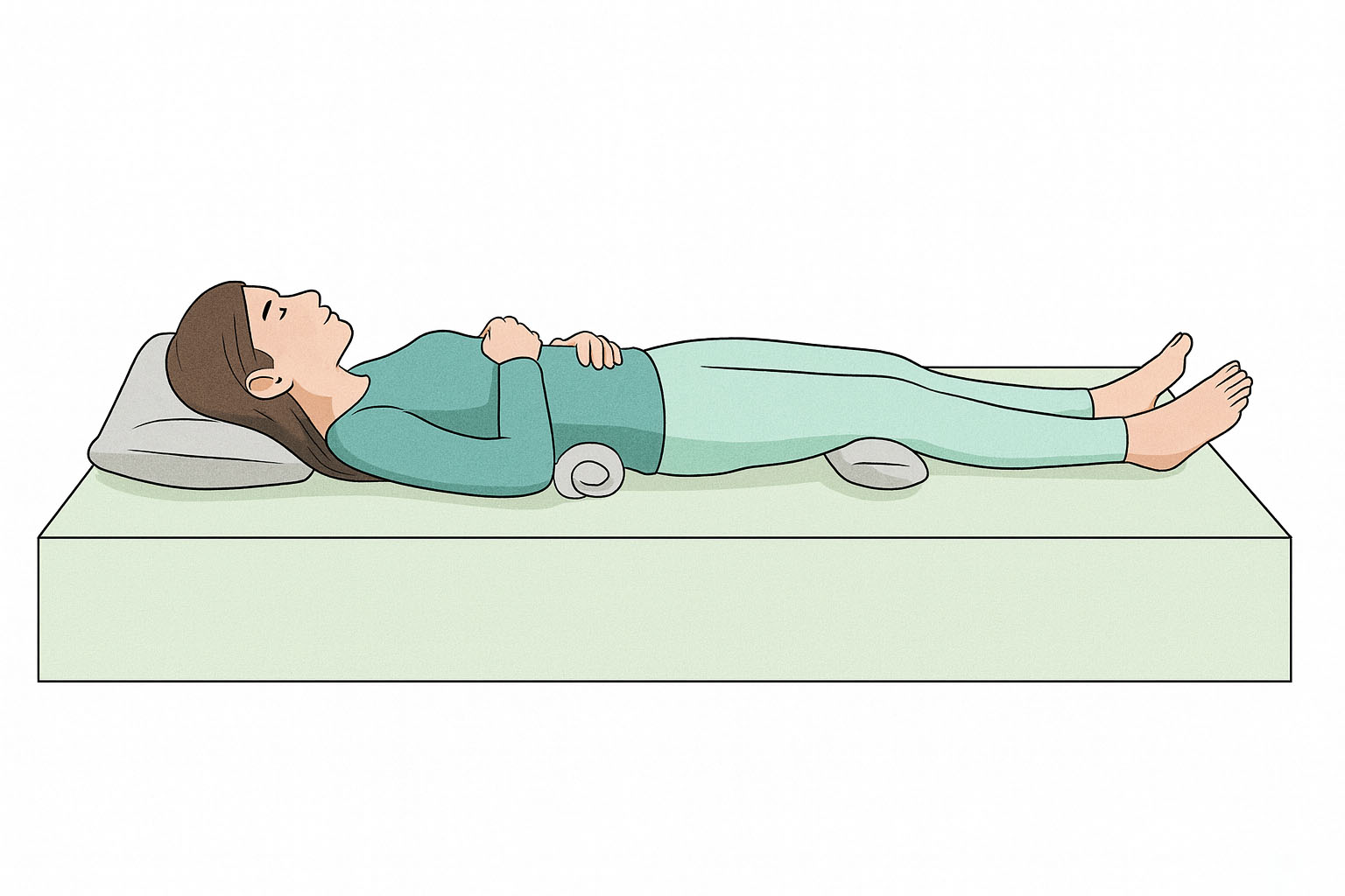 Sur le dos, placez un coussin sous les genoux pour garder l’alignement de la colonne. Glissez, si besoin, une serviette roulée dans le creux lombaire : cela comble l’espace et répartit la pression. Un matelas de soutien (ni trop mou ni trop ferme) aide aussi le dos à « se poser » sans forcer.