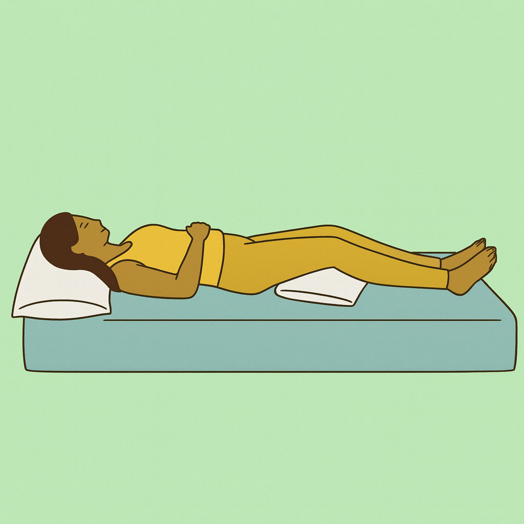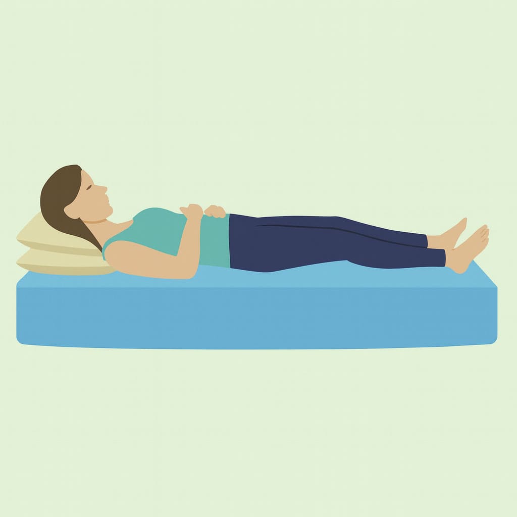 Allongez-vous sur le dos avec un coussin sous les genoux : cette position détend les muscles abdominaux et diminue la tension lombaire. Si le bas-ventre tire, essayez une bouillotte tiède (bien protégée) posée quelques minutes avant l’endormissement pour relâcher les crampes.