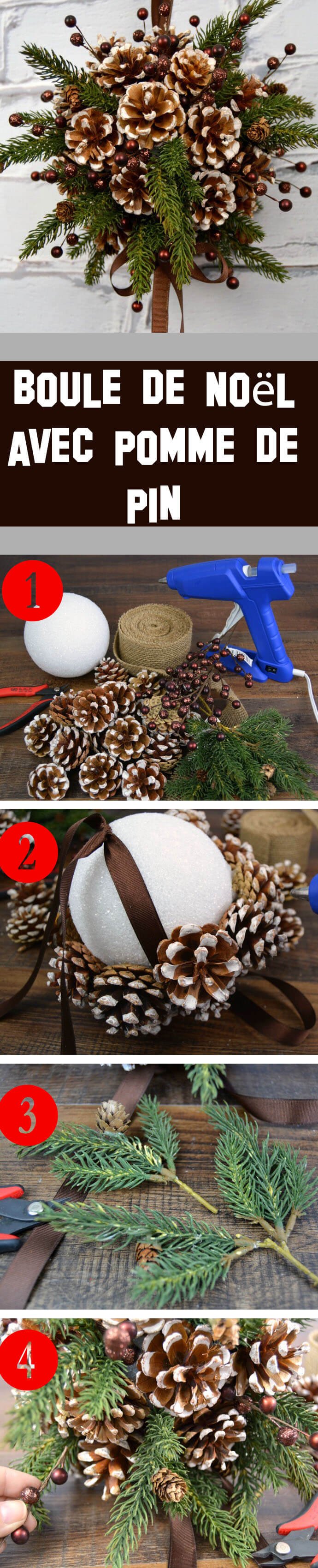 DIY : Vous trouveriez dans blog.consumercrafts.com comment faire cette boule de noël par détail.