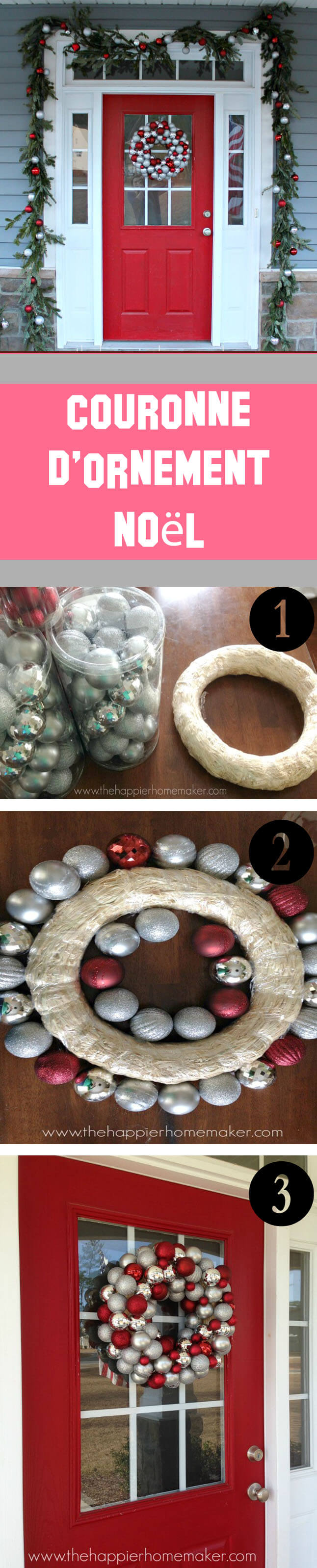 DIY : Vous trouveriez dans thehappierhomemaker comment faire cette couronne d’ornement Noël par détail.