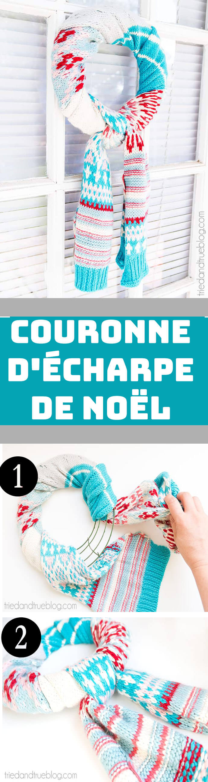 DIY : Vous trouveriez dans triedandtrueblog comment faire cette couronne d’écharpe de Noël par détail.