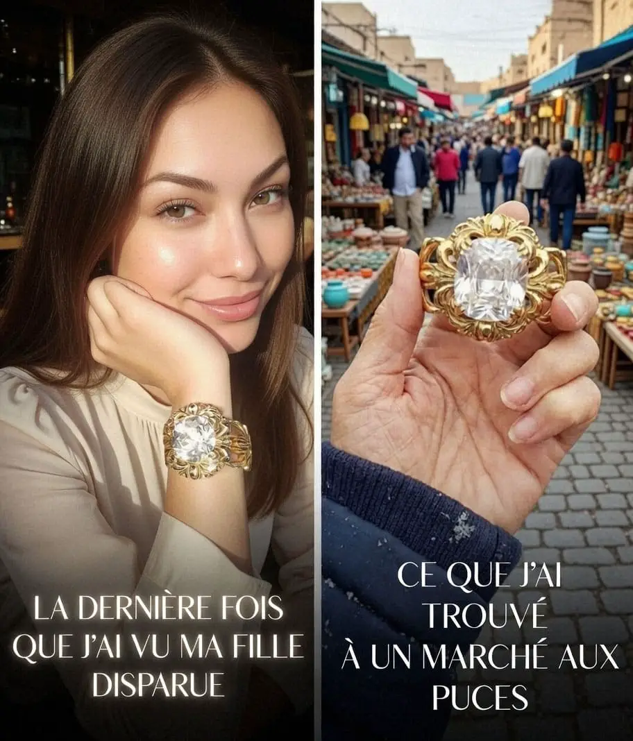 Je pensais qu’errer dans un marché aux puces m’aiderait à respirer un peu, à oublier l’absence qui me ronge depuis des années. Mais au lieu d’un simple objet ancien ou d’un livre poussiéreux, j’ai retrouvé le bracelet de ma fille disparue. Celui qu’elle portait le jour où elle s’est volatilisée. Le lendemain matin, ma maison était entourée de voitures de police… et la vérité que j’avais tenté d’étouffer sous le chagrin a commencé à refaire surface.