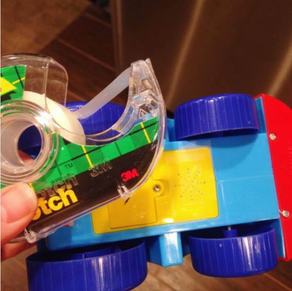 Il suffit de mettre du scotch sur les haut-parleurs des jouets et le volume sera diminué.