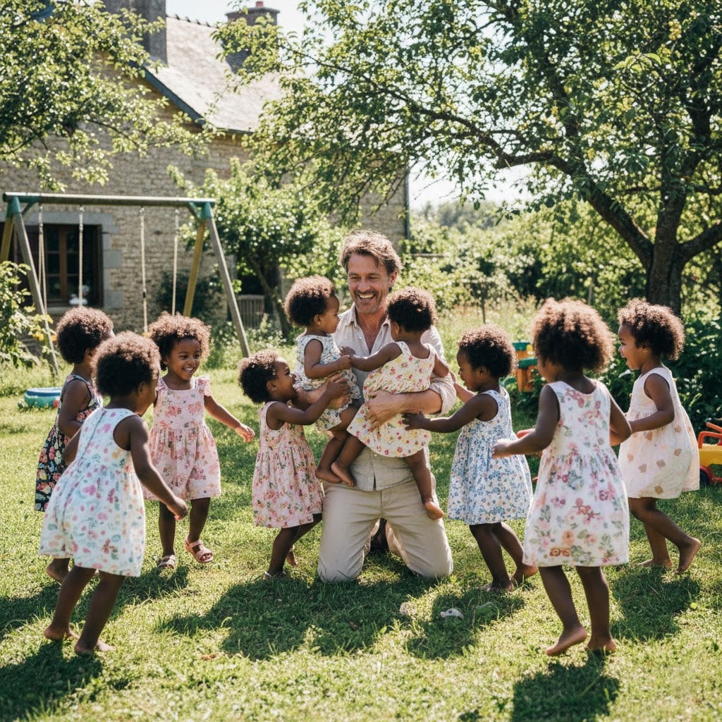Il apprit à tout faire par lui-même : coiffer des cheveux bouclés, chanter des berceuses, apaiser les pleurs nocturnes. Sa maison, jadis silencieuse, se transforma en un havre de vie et de rires. Les chamailleries, les fêtes improvisées et les repas partagés faisaient désormais partie du quotidien. Ce foyer, né de la perte, devint un symbole de résilience et d’amour inconditionnel.