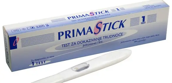 Comment utiliser ce test? : Tout d’abord, mettez Primastick dans le jet d’urine pendant 5 secondes. Ensuite, attendez 2 à 5 minutes et le résultat apparaîtra. Si vous avez eu un trait rose au niveau de la fenêtre de lecture, alors, c’est un test positif, sinon si aucun trait n’apparaît au niveau de la fenêtre de lecture alors, c’est un test négatif.(Quel que soit le résultat, un trait rose doit toujours apparaître dans la fenêtre de contrôle.)