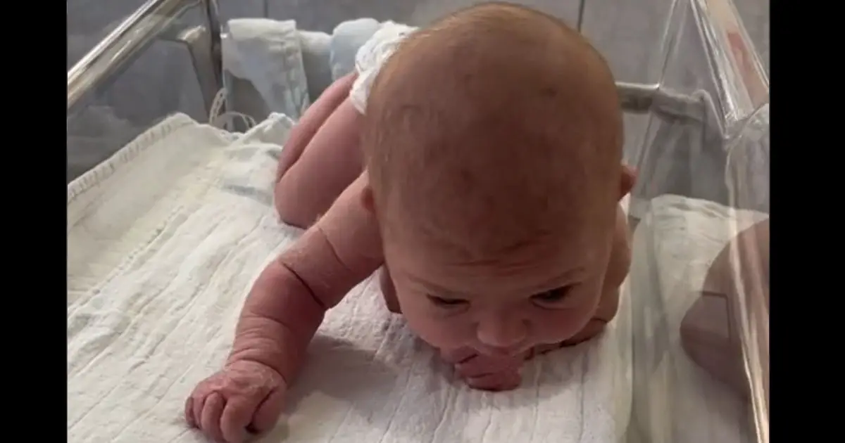 La vidéo a déjà fait sensation avec plus de 50 millions de vues sur TikTok ! C’est vraiment rare de voir un bébé âgé de seulement trois jours se lever sur ses avant-bras et tenter de trouver de quoi se sustenter (et je ne suis pas en train d’exagérer). Dans une vidéo apparemment filmée à la maternité, on peut observer la petite Nyilah, née il y a tout juste trois jours, se mettre à quatre pattes dans son berceau et essayer d’avancer, provoquant des exclamations de stupéfaction de la part de sa mère et de sa grand-mère.