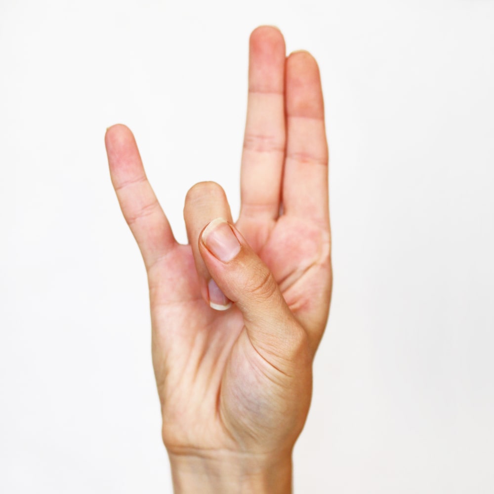 - Saisissez votre annulaire entre le pouce et l’index de la main opposée.